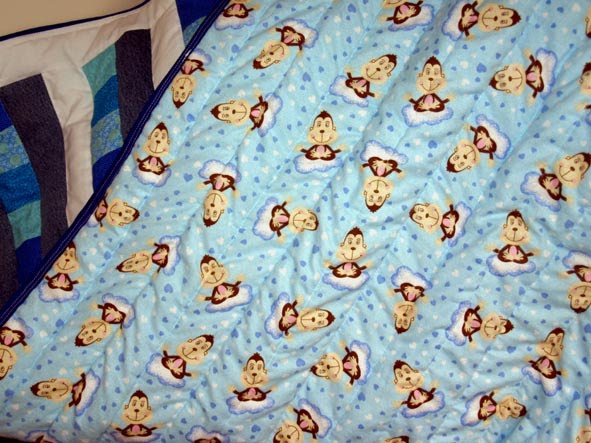 Anyway, this is the latest in my series of last-minute quilts, a gift for a friend with a new baby. It's her fourth child, so she probably already has a hundred blankets, but I always love something soft and new, so a baby quilt was a natural choice.